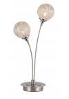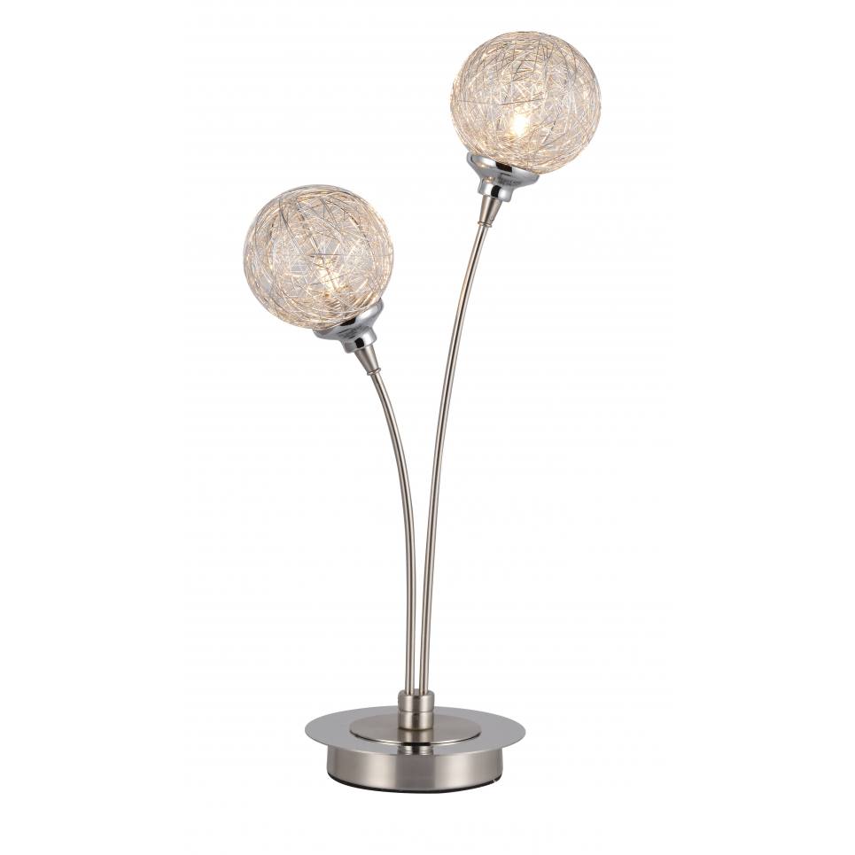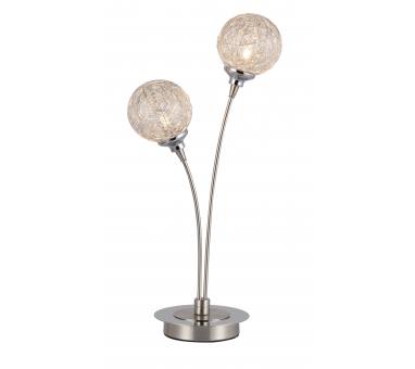 Επιτραπέζιο φωτιστικό (δίφωτο πορτατίφ ),με μεταλλική βάση σε νίκελ ματ και συρμάτινα διακοσμητικά στοιχεία (μπάλες).Ύψος: 47 εκ.Μήκος: 23 εκ.Πλάτος: 17 εκ.Λαμπτήρες: 2 τεμ.Τύπος Λαμπτήρων: G9