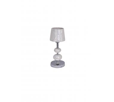 Επιτραπέζιο φωτιστικό (μονόφωτο πορτατίφ),με μεταλλική βάση χρώματος χρωμίου και αμπαζούρκατασκευασμένο από φίλντισι, ενισχυμένο εσωτερικά.Ύψος: 38 εκ.Διάμετρος: 15 εκ.Λαμπτήρες: 1 τεμ.Τύπος Λαμπτήρων: Ε27Max Watt: 40