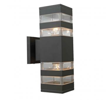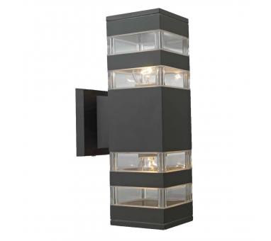 Επιτοίχιο φωτιστικό εξωτερικού χώρου( απλίκα), στο χρώμα του γραφίτη (σκούρο γκρί) με φωτισμό πάνω-κάτω .Το σώμα του φωτιστικού είναι κατασκευασμένο από χυτό αλουμίνιουψηλής πίεσης και κράμα αλουμινίου.Η επιφάνειά του είναι επικαλυμμένη με διπλή αντιδιαβρωτική στρώσηώστε να παρατείνει την αντοχή του.Ο λαμπτήρας προστατεύεται από PVC υψηλής ποιότητας.Ύψος: 30 εκ.Μήκος: 9 εκ.Πλάτος: 15,5 εκ.Λαμπτήρες: 2 τεμ.Τύπος Λαμπτήρα: Ε27Watt: 60Στεγανότητα: IP44