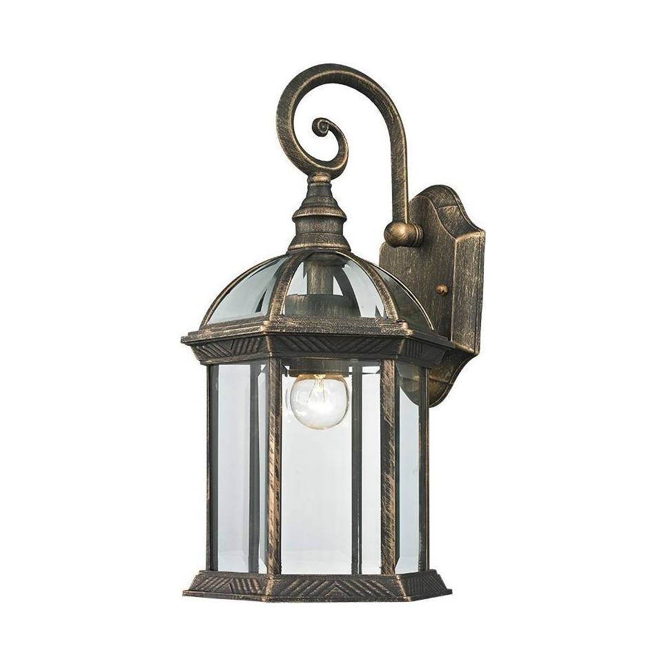 Κλασικό επιτοίχιο φωτιστικό εξωτερικού χώρου (μονόφωτη απλίκα)Κατασκευασμένο από κράμα αλουμινίου σε χρυσή πατίναΟ λαμπτήρας προστατεύεται από γυάλινο κάλυμμα.Ύψος: 40εκ.Πλάτος: 20κ.Βάθος: 20εκ.Λαμπτήρες: 1 τεμ.Τύπος Λαμπτήρων: Ε27Στεγανότητα: IP44
