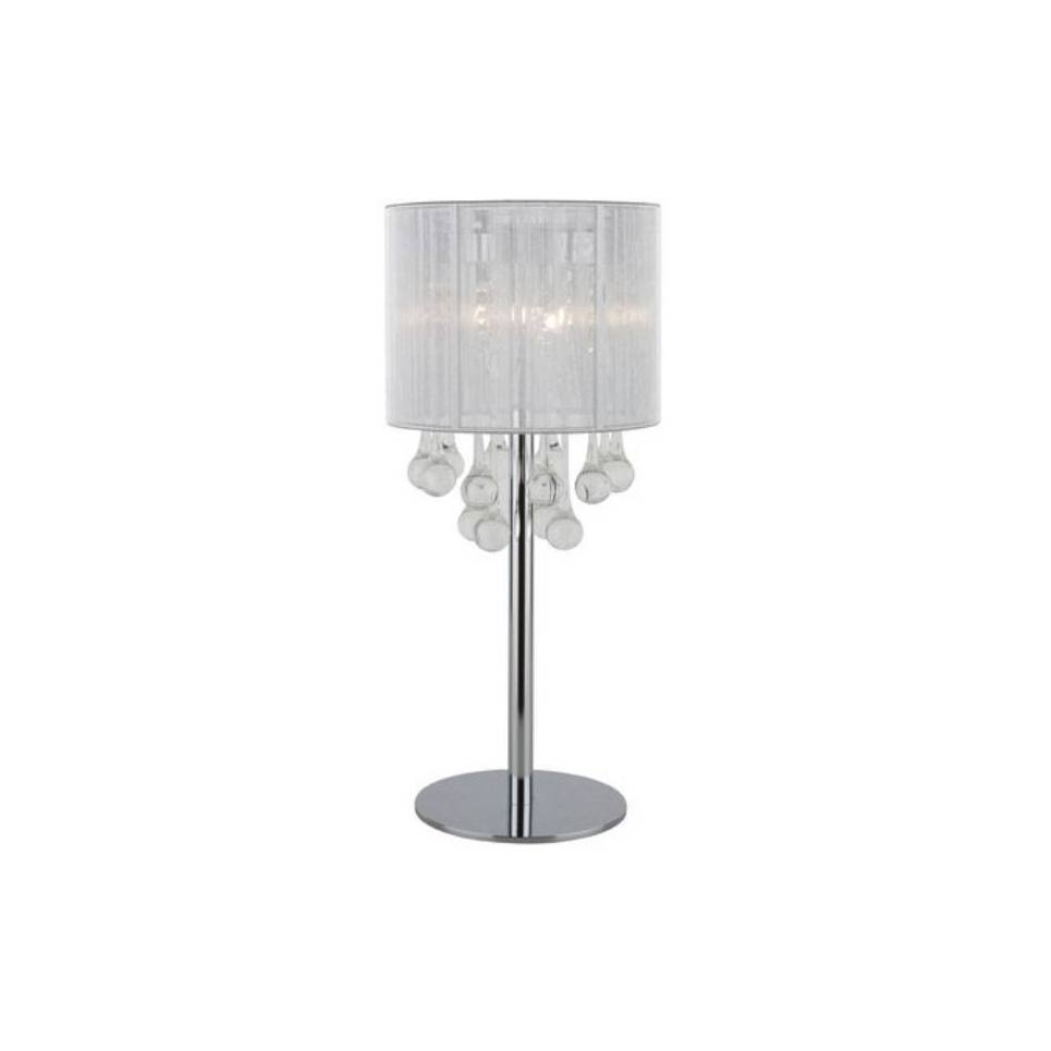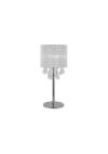 Επιτραπέζιο φωτιστικό με βάση σε χρώμιοκαι κρύσταλλα .Το αμπαζούρ είναι κατασκευασμένο από νήματα χρώματος ασημί.Ύψος: 38εκ.Μήκος: 20εκ. (διάμετρος)Λαμπτήρες: 4 τεμ. (περιέχεται)Τύπος Λαμπτήρων: G9Max Watt: 33