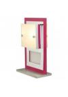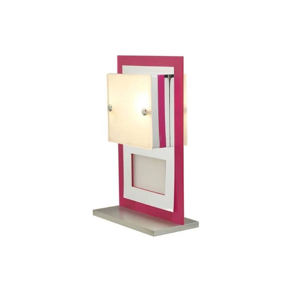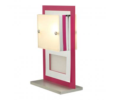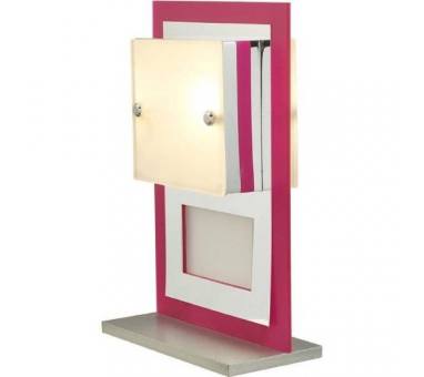 Επιτραπέζιο φωτιστικό (μονόφωτο πορτατίφ), με βάση από χρώμιο και πλαίσιο από plexiglass. Ως διακοσμητικά στοιχεία έχει τετράγωνα γυαλιά αμμοβολής εκατέρωθεν του πλαισίου. Υψος: 24 εκ.Μήκος: 15 εκ.Πλάτος: 8 εκ.Λαμπτήρες: 1 τεμ.Τύπος Λαμπτήρα: G9Watt: 40