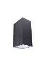 Επιτοίχιο φωτιστικό εξωτερικού χώρου(απλίκα), στο χρώμα του γραφίτη (σκούρο γκρί) με φωτισμό πάνω-κάτω.Το σώμα του φωτιστικού είναι κατασκευασμένο από χυτό αλουμίνιουψηλής πίεσης και κράμα αλουμινίου.Η επιφάνειά του είναι επικαλυμμένη με διπλή αντιδιαβρωτική στρώσηώστε να παρατείνει την αντοχή του.Ο λαμπτήρας προστατεύεται από γυαλί.Ύψος: 15 εκ.Μήκος: 65 εκ.Βάθος: 80 εκ.Λαμπτήρες: 2 τεμ.Τύπος Λαμπτήρα: GU10Στεγανότητα: IP44