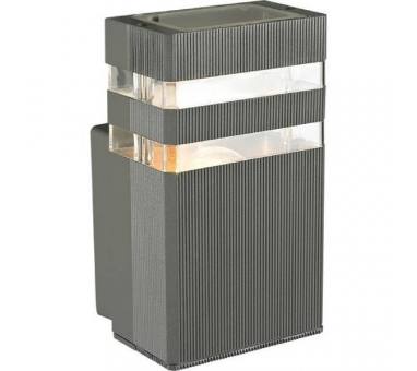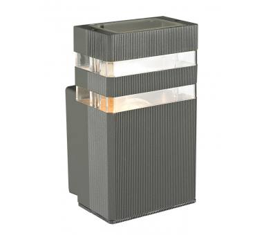Επιτοίχιο φωτιστικό εξωτερικού χώρου(απλίκα), στο χρώμα του γραφίτη (σκούρο γκρί).Το σώμα του φωτιστικού είναι κατασκευασμένο από χυτό αλουμίνιουψηλής πίεσης και κράμα αλουμινίου.Η επιφάνειά του είναι επικαλυμμένη με διπλή αντιδιαβρωτική στρώσηώστε να παρατείνει την αντοχή του.Ο λαμπτήρας προστατεύεται από PVCυψηλής ποιότητας.