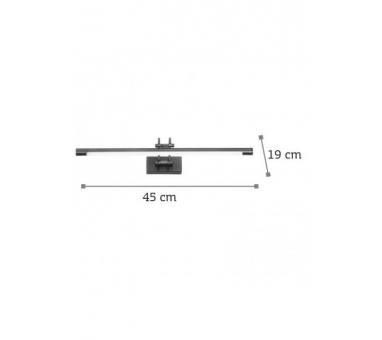 Πρόκειται για ένα μαύρο μεταλλικό επιτοίχιο φωτιστικό με κινούμενο το μπροστινό μέρος. Το λευκό ακρυλικό καλύπτει τον led φωτισμό θερμής απόχρωσης.