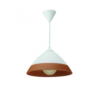 Πρόκειται για ένα κρεμαστό φωτιστικό αποτελούμενο από κωνικό γυαλί σε συνδυασμό λευκού και καφέ. Η λευκή του ανάρτηση ρυθμίζεται για να προσαρμόζεται στον κάθε χώρο.