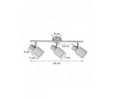 Πρόκειται για ένα μεταλλικό σποτ σε απόχρωση λευκής πατίνας με τρεις λαμπτήρες. Το λευκό γυαλί επιτρέπει στο φως να διαχέεται ομοιόμορφα στον χώρο. Το μπροστινό μέρος του κινείται προς οποιαδήποτε κατεύθυνση.