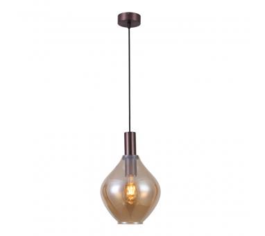 Μονόφωτο-κρεμαστό φωτιστικό κατασκευασμένο από χειροποίητο γυαλί και μεταλλική βάση.