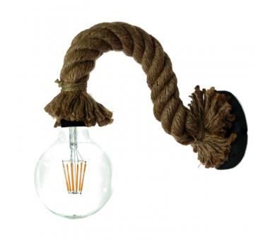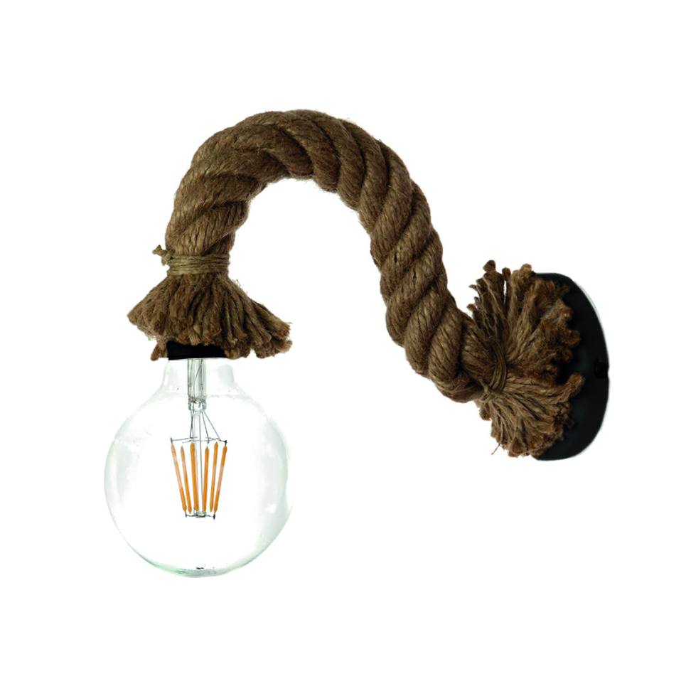 Επιτοίχιο φωτιστικό κατασκευασμένο από καφέ σχοινί με διακριτικές μαύρες λεπτομέρειες. Ιδανική για ποικίλους εσωτερικούς χώρους, αφού διαχέει το φως ομοιόμορφα.