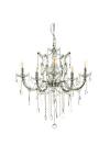 Πρόκειται για ένα κρεμαστό φωτιστικό με έξι λαμπτήρες. Το σώμα του αποτελείται από χρώμιο μέταλλο που καλύπτεται από διάφανο γυαλί. Τα κρύσταλλα που το διακοσμούν είναι διάφανα. Η μεταλλική ανάρτηση είναι ρυθμιζόμενη ώστε να προσαρμόζεται στον κάθε χώρο. Διατίθεται και η επιλογή του υφασμάτινου καπέλου το οποίο πρέπει να ζητηθεί επιπλέον.