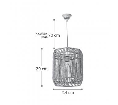 Ένα κρεμαστό φωτιστικό κατασκευασμένο από καφέ σχοινί κατάλληλο για ποικίλους εσωτερικούς χώρους. Αποτελεί την ιδανική επιλογή για όποιον επιθυμεί μια πιο χαλαρή διάθεση στον χώρο του. Η ανάρτηση προσαρμόζεται στο ύψος του κάθε χώρου.