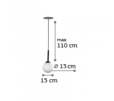 Πρόκειται για ένα μαύρο μεταλλικό φωτιστικό με λευκή οπαλίνα. Το ύψος του μπορεί να ρυθμιστεί ώστε να προσαρμοστεί στον μοντέρνο χώρο τοποθέτησής του.