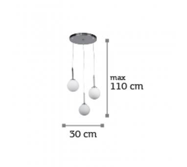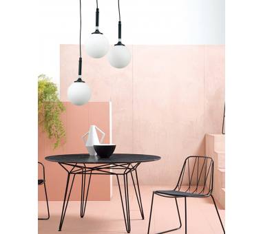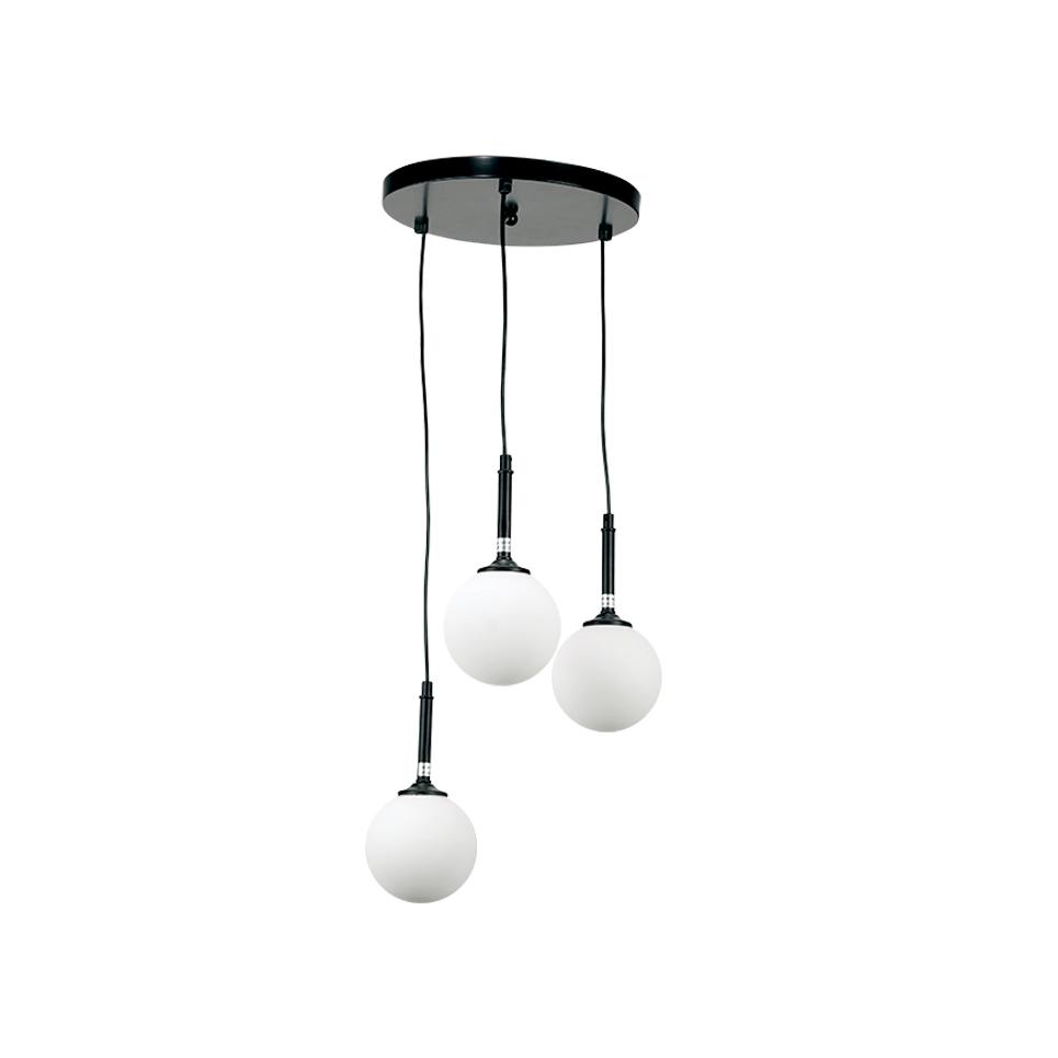 Πρόκειται για ένα μαύρο μεταλλικό φωτιστικό με λευκή οπαλίνακαι τρεις λαμπτήρες. Το ύψος μπορεί ναρυθμιστεί ώστε να προσαρμοστεί στον μοντέρνο χώρο τοποθέτησής του.