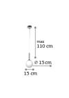 Πρόκειται για ένα χρώμιο μεταλλικό φωτιστικό με λευκήοπαλίνα. Το ύψος του μπορεί να ρυθμιστεί ώστε να προσαρμοστεί στον μοντέρνοχώρο τοποθέτησής του.