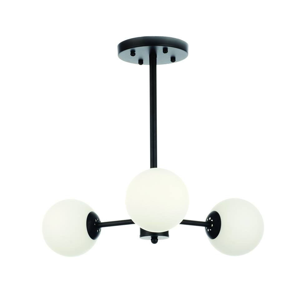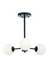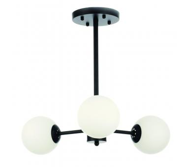 Πρόκειται για ένα μαύρο μεταλλικό φωτιστικό με λευκή οπαλίνα στο τελείωμα και τρεις λαμπτήρες. Η μίνιμαλ σχεδίασή του το τοποθετεί ιδανικά σε οποιονδήποτε μοντέρνο εσωτερικό χώρο, ακόμα και αν είναι χαμηλοτάβανος.