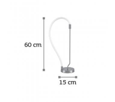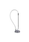 Πρόκειται για ένα επιτραπέζιο φωτιστικό με αφαιρετική σχεδίαση. Το χρώμιο μέταλλο συμπληρώνει τον led φωτιζόμενο και εύκαμπτο σωλήνα θερμής απόχρωσης. Το φως διαχέεται σε όλον τον χώρο και διακοσμεί ιδανικά οποιονδήποτε μοντέρνο εσωτερικό χώρο.