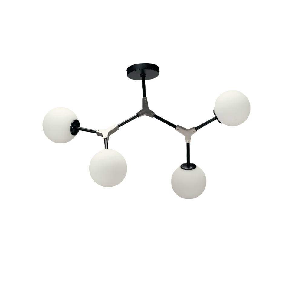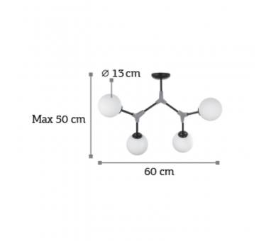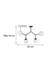 Πρόκειται για ένα κρεμαστό φωτιστικό από μαύρο μέταλλο και νίκελ ματ λεπτομέρειες. Η λευκή οπαλίνα δένει αρμονικά με το υπόλοιπο σώμα και διαχέει το φως ομοιόμορφα σε όλον τον χώρο. Οι βραχίονες κινούνται για να πάρουν το επιθυμητό σχήμα.