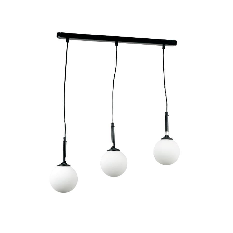 Πρόκειται για ένα μαύρο μεταλλικό φωτιστικό με λευκή οπαλίνα και τρεις λαμπτήρες. Το ύψος μπορεί να ρυθμιστεί ώστε να προσαρμοστεί στον μοντέρνο χώρο τοποθέτησής του.