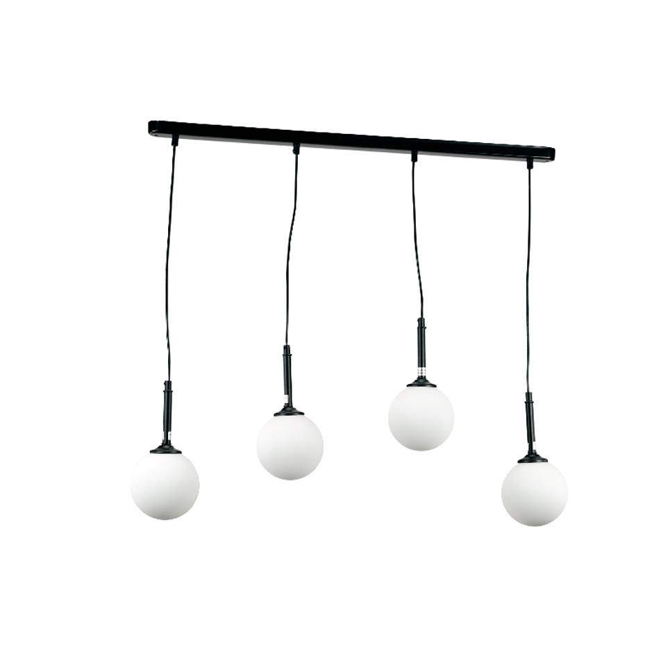 Πρόκειται για ένα μαύρο μεταλλικό φωτιστικό με λευκή οπαλίνα και τέσσερις λαμπτήρες.  Το ύψος μπορεί να ρυθμιστεί ώστε να προσαρμοστεί στον μοντέρνο χώρο τοποθέτησής του.