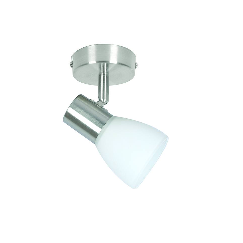 Πρόκειται για ένα επιτοίχιο μεταλλικό σποτ σε νίκελ ματ απόχρωση με έναν λαμπτήρα. Το λευκό γυαλί επιτρέπει στο φως να διαχέεται ομοιόμορφα στον χώρο. Το μπροστινό μέρος του κινείται προς οποιαδήποτε κατεύθυνση.