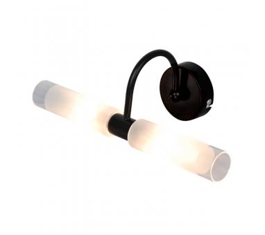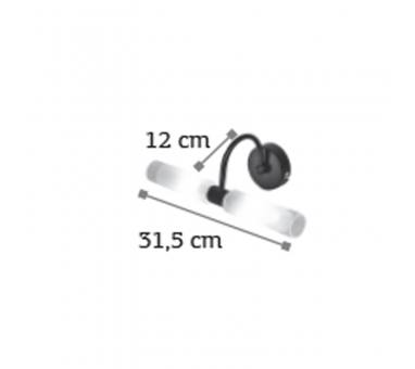 Πρόκειται για ένα επιτοίχιο φωτιστικό κατασκευασμένο από μέταλλο σε μαύρη απόχρωση με δύο λαμπτήρες που καλύπτονται από κυλινδρικό γυαλί αμμοβολής με διάφανες λεπτομέρειες. Είναι η ιδανική επιλογή για φωτισμό μπάνιου τοποθετημένο πάνω από τον καθρέπτη αφού το φως διαχέεται ομοιόμορφα.