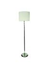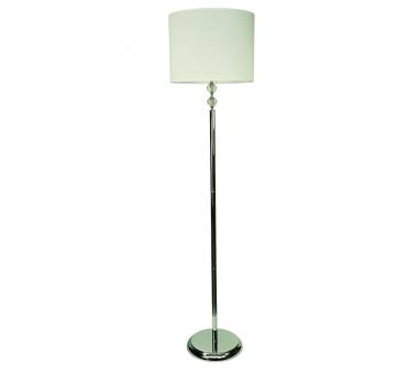 Πρόκειται για ένα χρώμιο μεταλλικό επιδαπέδιο φωτιστικό με λευκό υφασμάτινο καπέλο. Τη λιτή του σχεδίαση συμπληρώνουν οι δύο διάφανοι κρύσταλλοι που του δίνουν μια επιπλέον λάμψη.