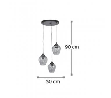 Πρόκειται για ένα κρεμαστό φωτιστικό από μαύρο μέταλλο και φιμέ γυαλί με τρεις λαμπτήρες. Διατίθεται και η επιλογή του διάφανου γυαλιού. Το ύψος της ανάρτησης ρυθμίζεται στον κάθε μοντέρνο εσωτερικό χώρο τοποθέτησης του.