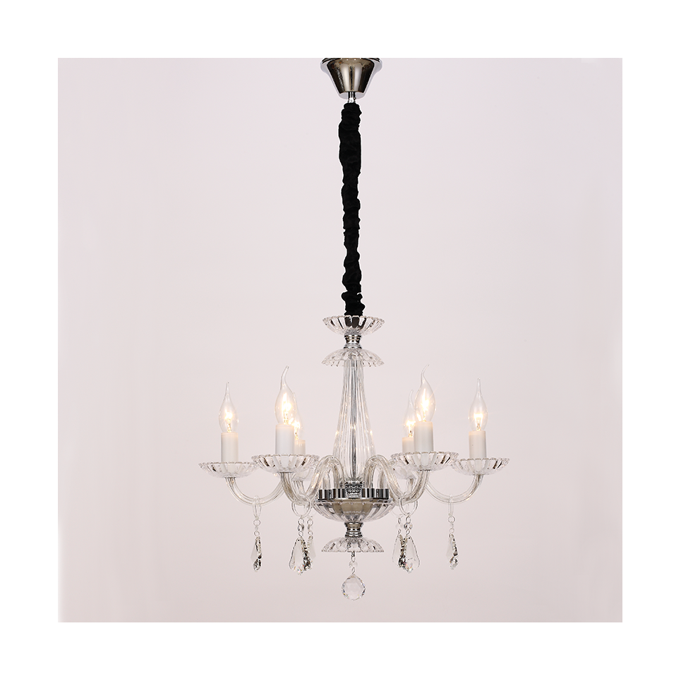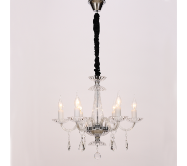 AcaLight Offer NETTO ΚΡΕΜΑΣ Φ/Σ 6ΧΕ14 ΔΙΑΦΑΝΟ ΚΡΥΣΤΑΛΛΟ+ΧΡΩΜΙΟ ΜΕΤΑΛΛΟ Φ53ΧH173CM LOMPELIA
