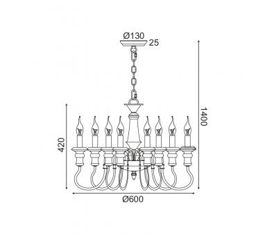 AcaLights ^ΚΡΕΜΑΣΤΟ Φ/Σ 8ΧΕ14 ΑΝΤΙΚΕ/ΣΚΟΥΡΙΑ ΜΕΤΑΛΛΙΚΟ D60XH150CM TOULOUSE