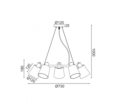 AcaLight Offer NETTO ΚΡΕΜΑΣΤΟ Φ/Σ 5ΧΕ14 ΜΑΥΡΟ ΜΕΤ/ΚΟ+ ΑΜΠΑΖΟΥΡ D73XH100CM NORMA