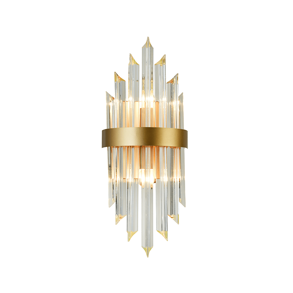 AcaLights ^ΕΠΙΤΟΙΧΟ Φ/Σ 2XE14 ΚΡΥΣΤΑΛΛΟ + ΧΡΥΣΟ ΜΕΤ/ΚΟ 22X13X54CM EMPIRE