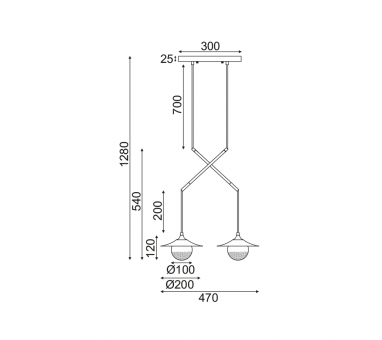 AcaLight Offer ^NETTO ΚΡΕΜΑΣΤΟ Φ/Σ 2ΧG9 ΟΡΕΙΧΑΛΚΟ/ΜΑΥΡΟ ΜΕΤ/ΚΟ + ΓΥΑΛΙ 47X20ΧΗ128CM LAYLA