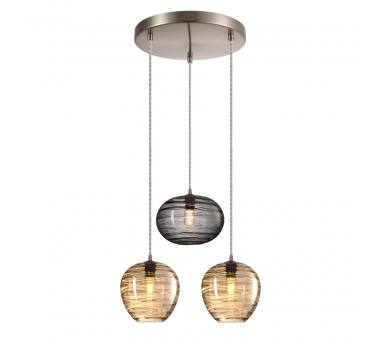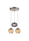 Πολύφωτο-κρεμαστό φωτιστικό, τρίφωτη ροζέτα, κατασκευασμένο από χειροποίητα γυαλιά σε φιμε και μελί και μεταλλική βάση σε νίκελ ματ.