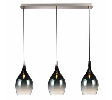 Πολύφωτο-κρεμαστό φωτιστικό, τρίφωτη ράγα, κατασκευασμένο από χειροποίητα γυαλιά και μεταλλική βάση σε νίκελ ματ.