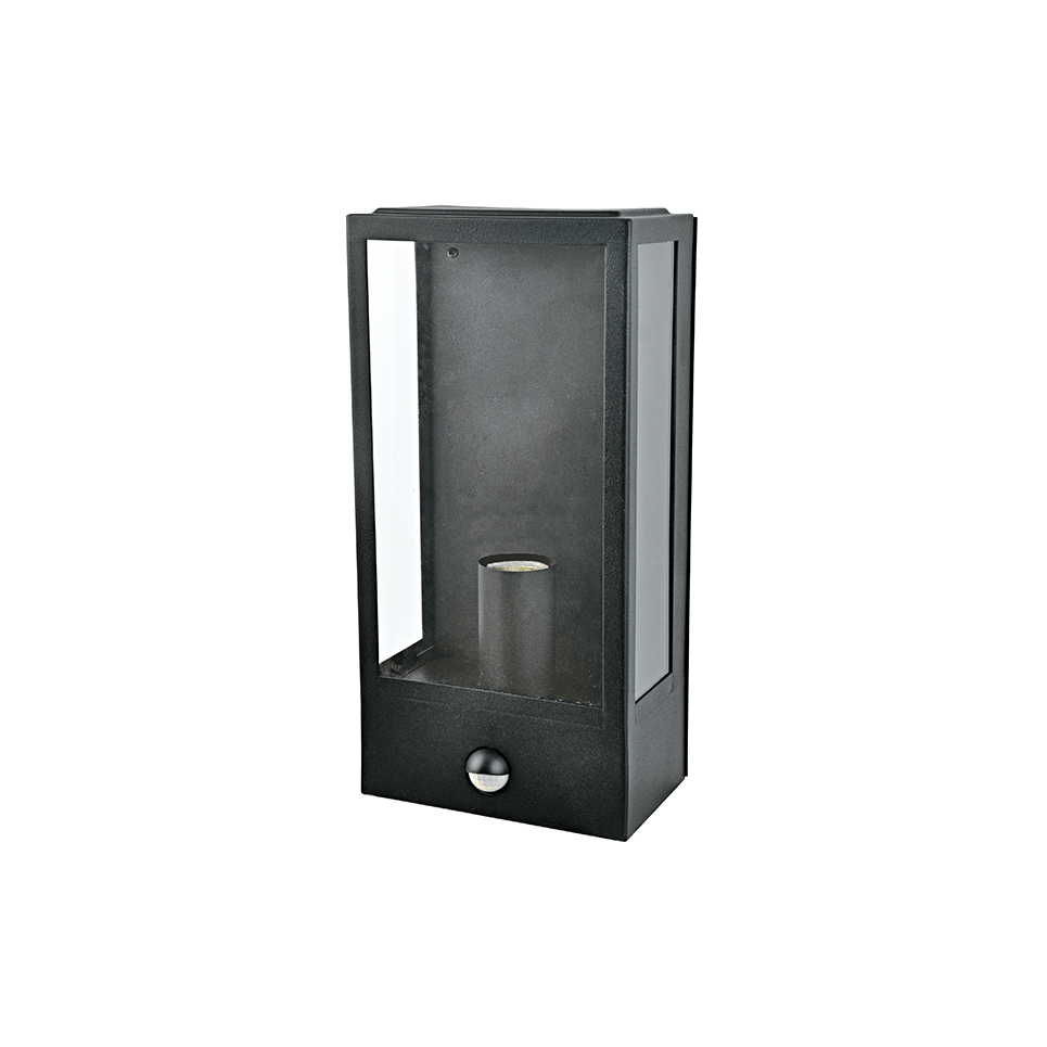 Aca Light ΜΑΥΡΟ ΕΠΙΤΟΙΧΟ ΦΩΤΙΣΤΙΚΟ CELIA 1XE27 IP44 ΜΕ ΔΙΑΦΑΝΟ ΓΥΑΛΙ & ΑΙΣΘΗΤΗΡΑ ΚΙΝΗΣΗΣ-ΜΕΡΑΣ ΝΥΧΤΑΣ