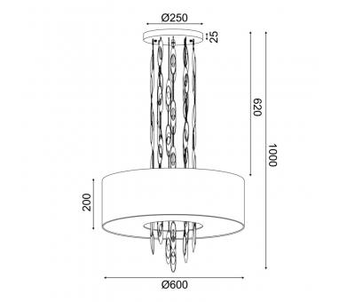 AcaLight Offer ^NETTO ΚΡΕΜΑΣΤΟ Φ/Σ 5ΧΕ14 CASCADA ΧΡΩΜΙΟ ΜΕΤ/ΚΟ + ΛΕΥΚΟ ΥΦΑΣΜΑ D60XH100CM