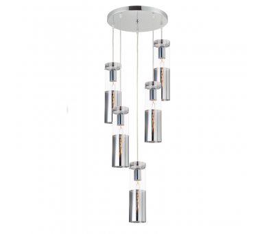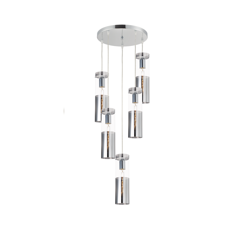 AcaLight Offer ^NETTO ΚΡΕΜΑΣΤΟ Φ/Σ 5ΧΕ27 ΧΡΩΜΙΟ ΓΥΑΛΙ+ΜΕΤΑΛΛΟ Φ37ΧΗ180CM DEJAVU