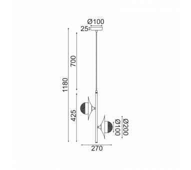 AcaLight Offer ^NETTO ΚΡΕΜΑΣΤΟ Φ/Σ 2ΧG9 ΧΑΛΚΙΝΟ/ΜΑΥΡΟ ΜΕΤ/ΚΟ + ΓΥΑΛΙ 27Χ20ΧΗ118CM HYDRA