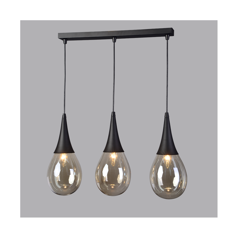AcaLights ΜΕΤΑΛ.ΚΡΕΜΑΣΤΟ Φ/Σ 3ΧΕ14 ΡΑΓΑ ΜΑΥΡΟ-ΚΕΧΡΙΜΠΑΡΙ ΓΥΑΛΙ 64Χ16cm ATENA