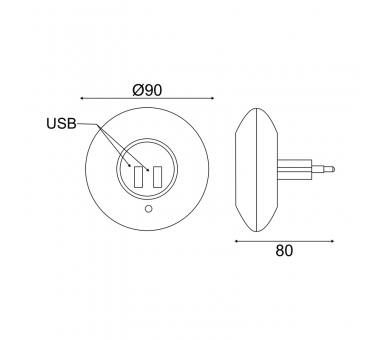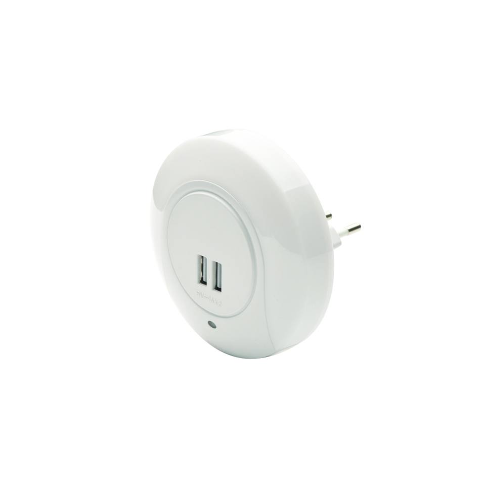 Aca Light LED ΛΑΜΠΑΚΙ ΝΥΚΤΟΣ 1W 4000K ΜΕ 2 USB ΘΥΡΕΣ, ΔΙΑΚΟΠΤΗ ON/OFF K AUTO MODE, ΛΕΥΚΟ ΠΛΑΣΤΙΚΟ 230V IP20