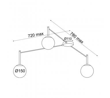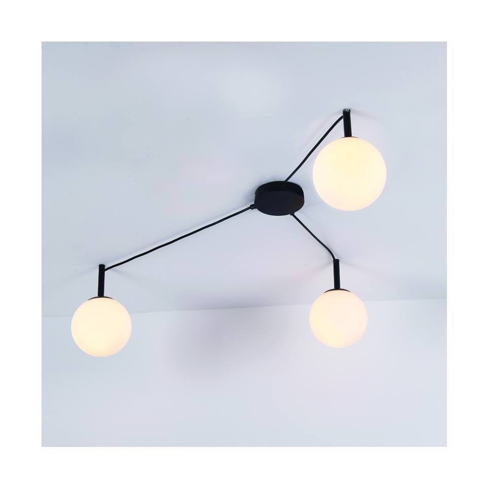 AcaLights ^ΟΡΟΦΗΣ Φ/Σ 3xE14 TIRAMOLLA ΜΑΥΡΟ ΜΕΤ/ΚΟ + ΛΕΥΚΟ ΓΥΑΛΙ 78Χ72Χ32CM