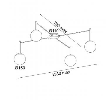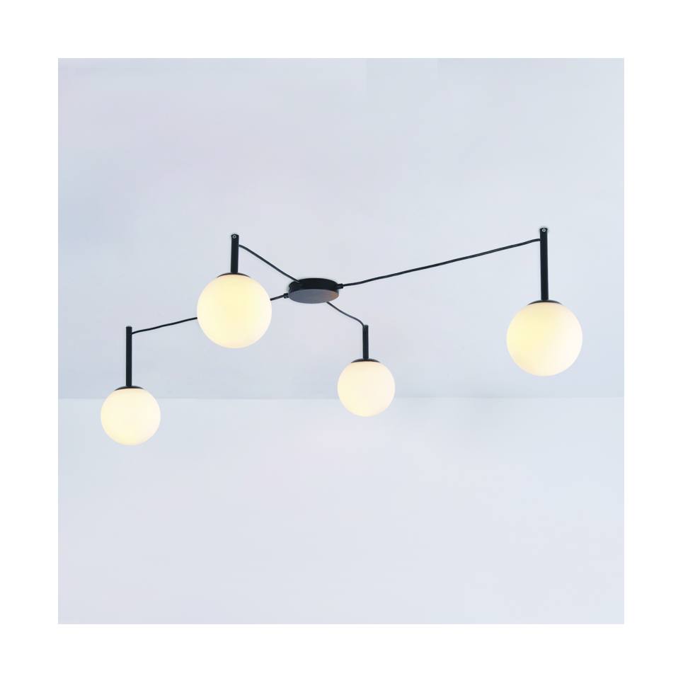 AcaLights ^ΟΡΟΦΗΣ Φ/Σ 4xΕ14 TIRAMOLLA ΜΑΥΡΟ ΜΕΤ/ΚΟ +ΛΕΥΚΟ ΓΥΑΛΙ 150Χ75Χ32CM