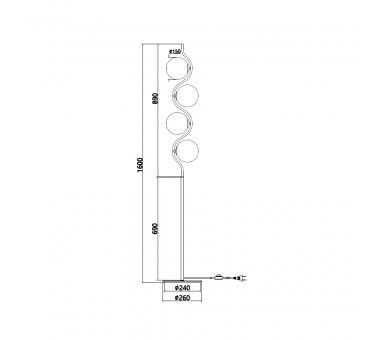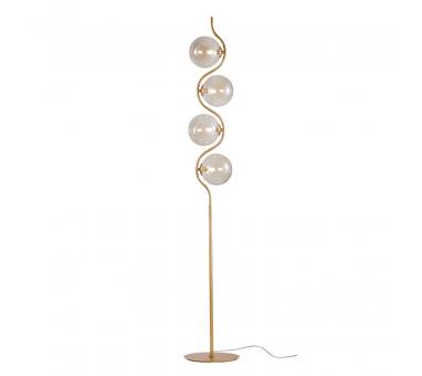 Τετράφωτο επιδαπέδιο φωτιστικό κατασκευασμένο από χειροποίητο γυαλί cognac και μεταλλικό σκελετό σε χρυσό χρώμα.