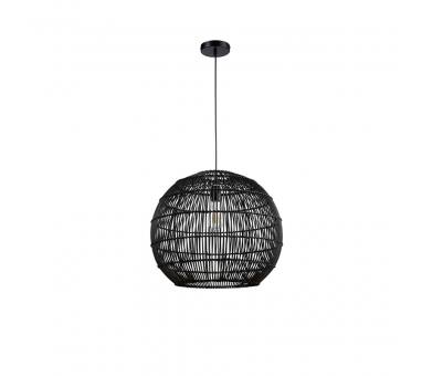 Κρεμαστό μονόφωτο φωτιστικό κατασκευασμένο από rattan σε μαύρο χρώμα.