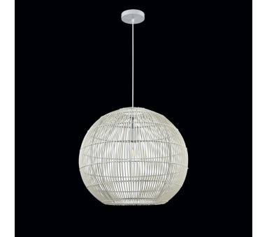 Κρεμαστό μονόφωτο φωτιστικό κατασκευασμένο από rattan σε λευκό χρώμα.