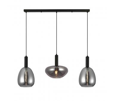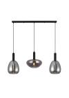 Τρίφωτο κρεμαστό φωτιστικό σε ράγα κατασκευασμένο από χειροποίητα γυαλιά σε χρώμα φιμέ και μέταλλο σε μαύρο ματ.