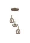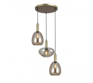 Τρίφωτο κρεμαστό φωτιστικό σε ροζέτα κατασκευασμένο από χειροποίητα γυαλιά σε χρώμα μελί και μέταλλο σε χρυσό ματ.