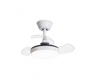 Ανεμιστήρας οροφής με φως και DC μοτέρ για αθόρυβη λειτουργεία. Διαθέτει τηλεχειριστήριο και πτυσσόμενα πτερύγια. Η βάση είναι από αλουμίνιο, σε λευκό χρώμα, ενώ τα πτερύγια είναι ακρυλικά σε διάφανο χρώμα.Διαθέτει έξι ταχύτητες, χρονοδιακόπτη και ταυτόχρονα παρέχει την δυνατότητα εναλλαγής θερμοκρασίας χρώματος σε όλο το φάσμα από 3000K-6000Κ αλλά και αυξομείωσης της φωτεινότητας.