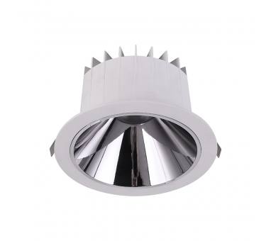 Φωτιστικό σποτ χωνευτό σε άσπρο χρώμα με ανακλαστήρα χρωμίου.