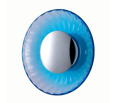 Φωτιστικό τοίχου κατασκευασμένο από χειροποίητο γυαλί χρώματος μπλε με μεταλλικά στοιχεία στο χρώμα του χρωμίου. Διαθέτει ενσωματωμένο LED με θερμό χρώμα (3000Κ).